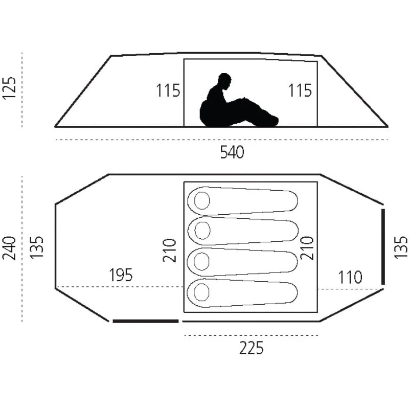 | Innertelt mål: | 225 x 210 x 115 cm |