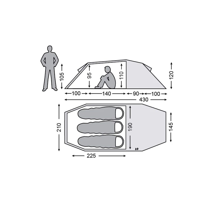 | Innertelt mål: | 225x190x110 cm |