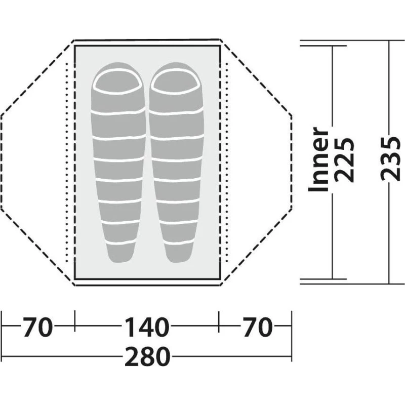 | Innertelt mål: | 225 x 140 x 100 cm |