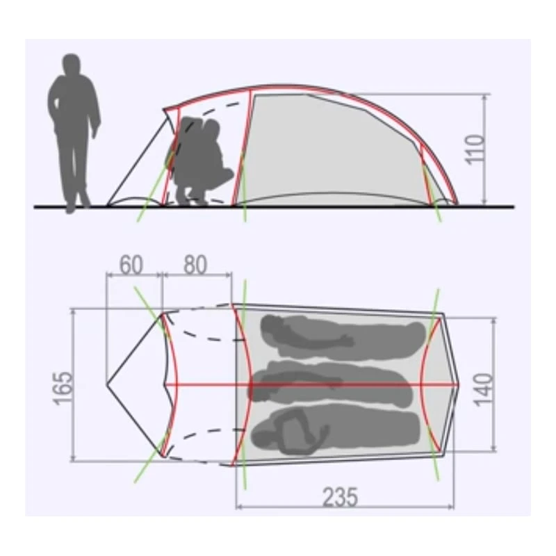 | Innertelt mĂĄl: | 235 x 165 x 110 cm |